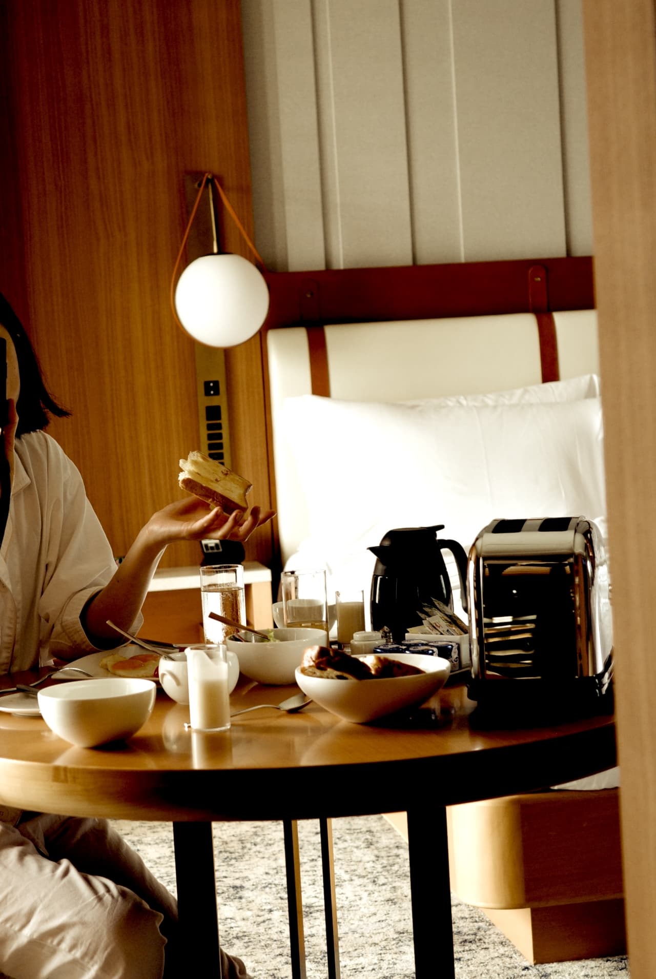 窓からは眩しい光が差し込んでいて、朝8時にしっかりと目が覚める。まだまだ寝ていてもいいが、目を覚ましたのには理由がある。それはルームサービス。名前の響きが大好きだ。自分が生活する空間に美味しいものが魔法のように運ばれてくる。子供の頃から密かに憧れていて、今回とても楽しみにしていた。