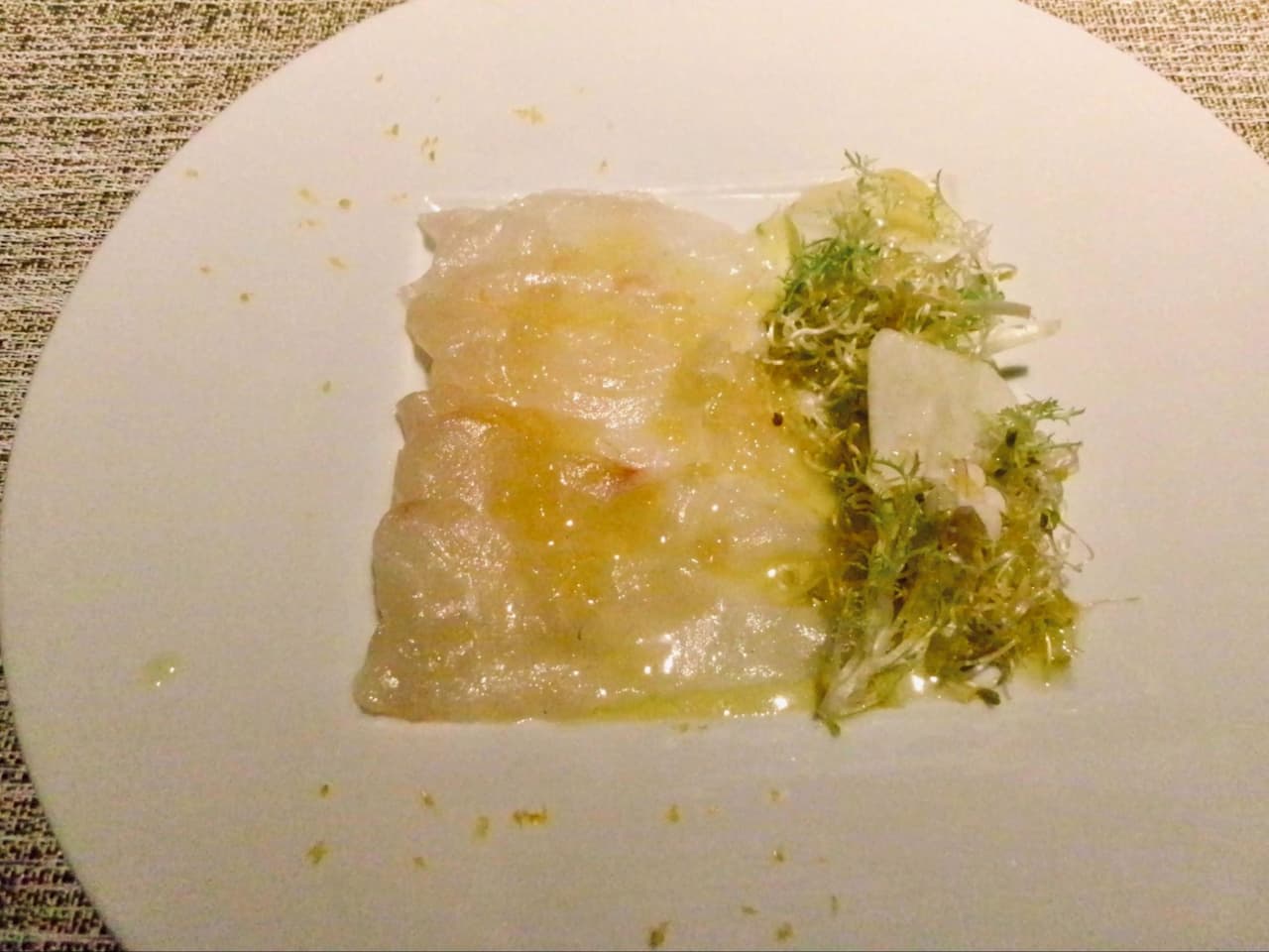 レストラン&バー「Larboard」へ行き、ゆったりとしたソファー席にひとり腰かける。ドリンクメニューを見せてもらい、スパークリングワインを頼む。やはり、まぶしい海を見たあとは、きらきらひかるお酒をわたしにください、そういう気持ちになるものである。アミューズを食べ、おいしくてきもちが高揚する。スパークリングワインをひとくち飲む。もっと高揚する。こりゃ、しゅわしゅわですよ。前菜の「真鯛のカルパッチョ仕立て 冬野菜のサラダと和柑橘のドレッシング」が運ばれてくる。背筋ののびるレストランでみる、サブタイトルみたいなの、いいですよね、とひとりごちる。真鯛で冬野菜を畳むように包み、口へ運ぶと、それはもう、頭から小さな花の出るようなおいしさである。本日のスープは蕪のスープ、そこに運ばれてくる温かな白いパンと、茶色のパン。ちぎっては、食べ、ちぎっては、食べ、飲み、食べ、飲み、食べ……。やさしく目をつぶって、ゆっくりと目をあけて、それから小さなため息をひとつこぼす、そういうふうなしあわせ。こんなごちそうは、身に余るしあわせだと思っていたけれど、全身全霊でたのしんでいるわたしがここにいる。しあわせは身に余らせず、食べつくす。そういった、あたらしい信念の生まれた瞬間だった。